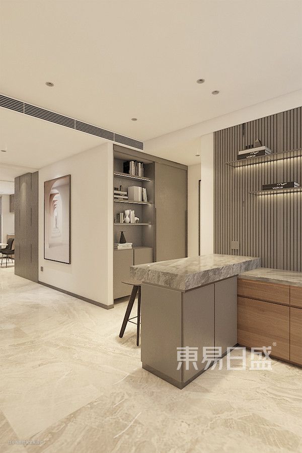 开放式玄关通常指开门直接面对的就是客厅或餐厅,玄关与周围的空间相互通透,没有视觉阻挡,对室内的布局一览无余。