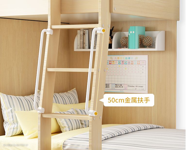 如果上铺是栏杆设计,国标要求上床安全栏板间隙在60-75mm之间,否则容易卡住使用者的腿或手臂。
