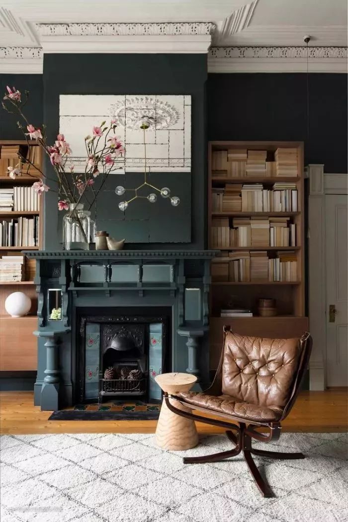 这个空间感觉就像是迎接新一季的完美方式。精致的雕花赋予这里魅力,壁炉上方的定制镜子具有复古的气氛,但它也不乏现代的气息,为黑暗空间增添了更多的光线和尺寸。