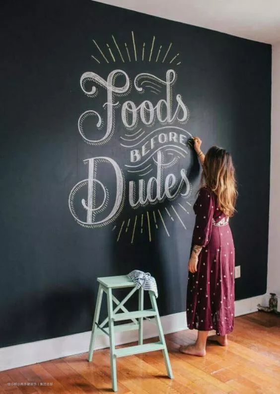 黑板墙在餐厅,就写一周的早餐食谱安排;黑板墙在玄关,就写天气预报和WiFi密码......反正黑板墙写啥都高级,这么一看我们手残星人的戏路也很宽。答应我,不要自暴自弃!