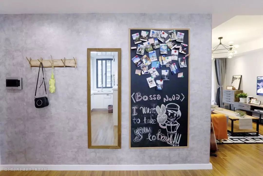 玄关是布置黑板装饰的入门级空间,能够让人从进入玄关的一刻就感受到主人的生活气息和创意。它还能记事备忘,如需要买的物品、缴费等。