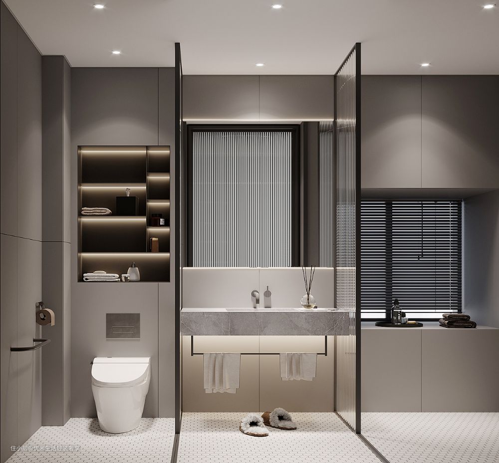 2.注重隐私的空间可以选择使用双层玻璃,加入磨砂玻璃这样隔音、遮挡效果更好。