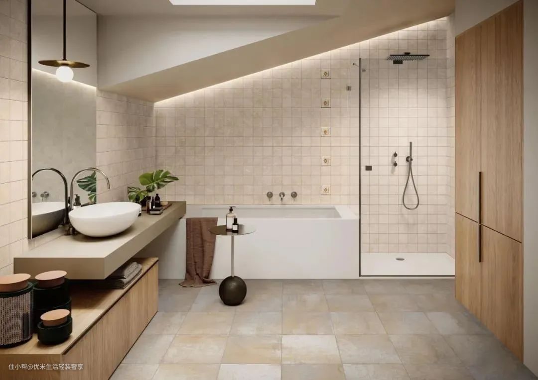 卫生间与玻璃隔断适配度非常高,因为玻璃隔断防潮防水的特性,常常用作淋浴区隔断。常见的有玻璃淋浴房和固定玻璃隔断这两种。当然,也可以用作卫生间门使用,颜值更高。