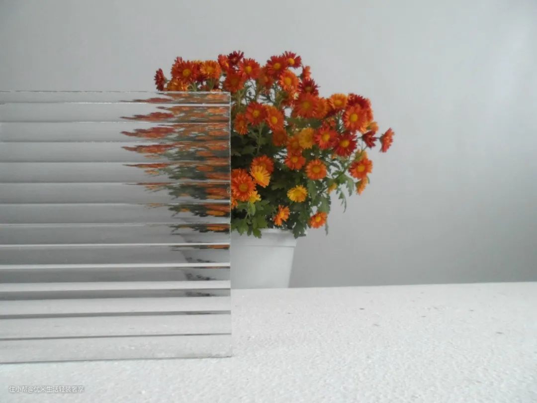 透明玻璃应该不用多说,就是有一点,普通的透明玻璃是带有绿色的,想要纯白色玻璃应选择超白玻。磨砂玻璃一般用在注重隐私的空间,如卧室、卫生间等。
