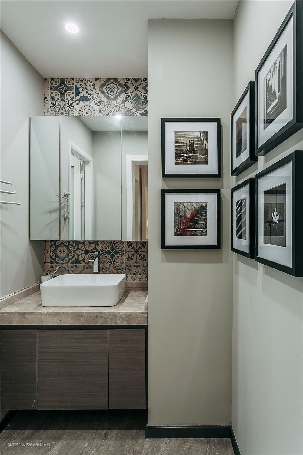 #卫生间 #客卫采用了干湿分离设计,装饰画丰富了干区墙面的艺术氛围。镜柜门收纳让杂乱的洗漱用品整洁归隐。#浴室柜 #镜柜 #花砖 #卫生间干区
