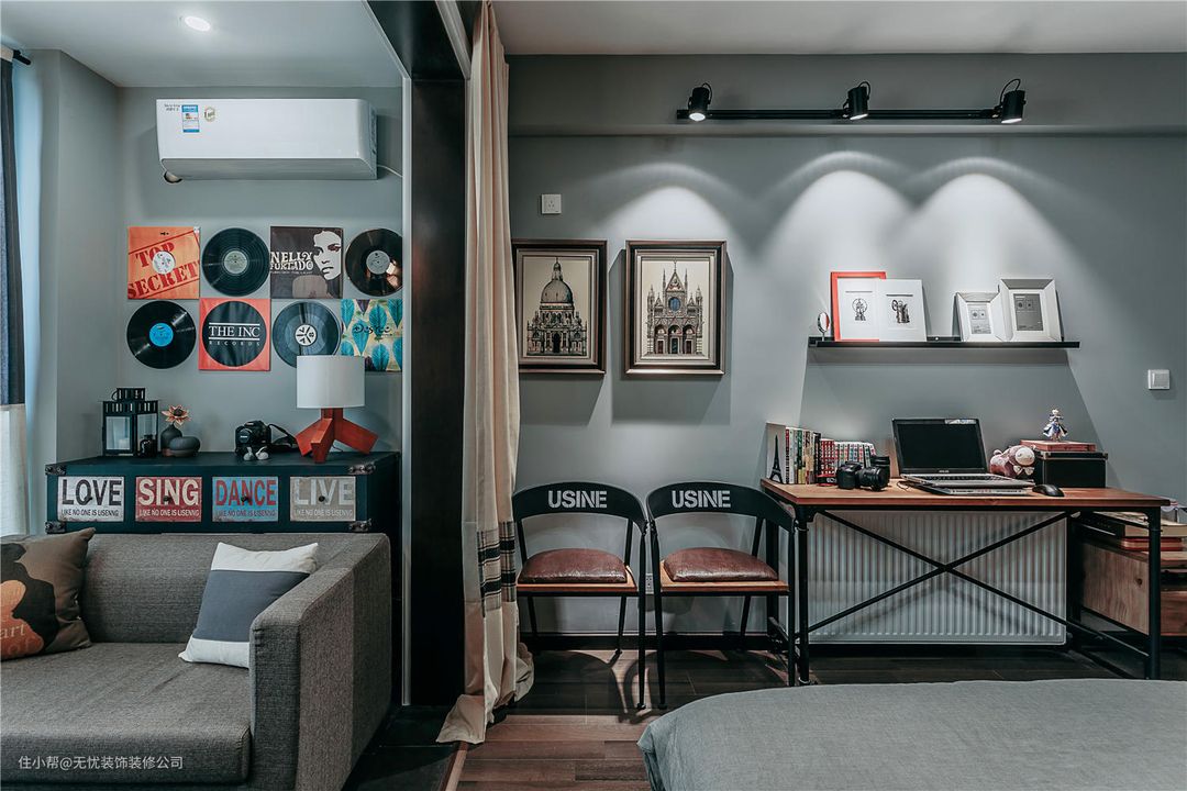 #卧室 #次卧室一的小阳台,闲暇时光里有阳光,这里随时可以发生美好事。另外将空调挂在小阳台里,减少了空调对卧室空间的违和感,黑色铁艺桌椅与墙面挂饰尽显工业化复古风格。#阳台 #工业风 #复古 #休闲区