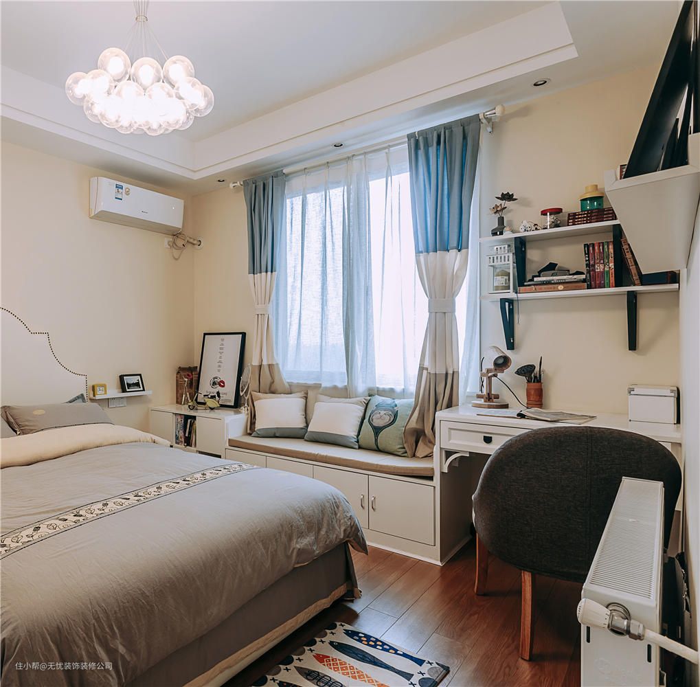 #儿童房 #相对于次卧室一来说,次卧二的色调偏清新自然,整体颜色白色和米色更加包容,适合未来不同人的使用,组合的飘窗榻+储物柜+书桌,细致入微的提高空间的利用率。更多大连房屋案例点击头像进主页!