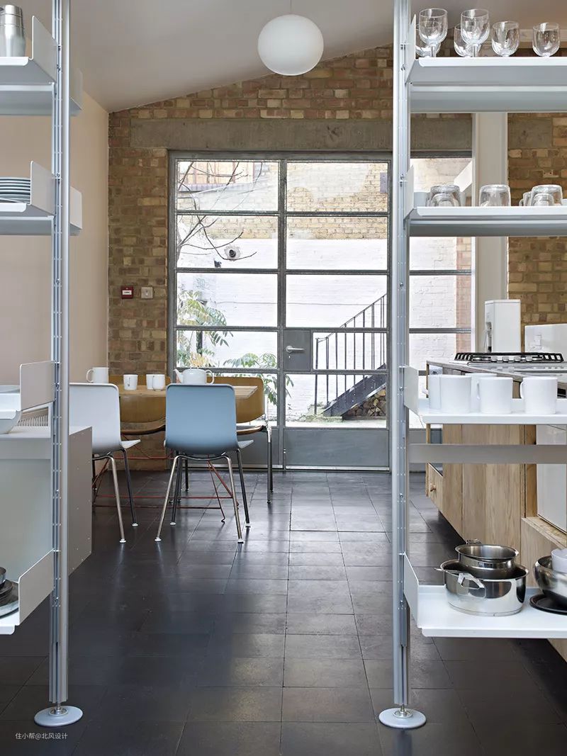 设计师决定完全放弃窗帘,以便不以阁楼风格关闭这间工作室的全景窗户。