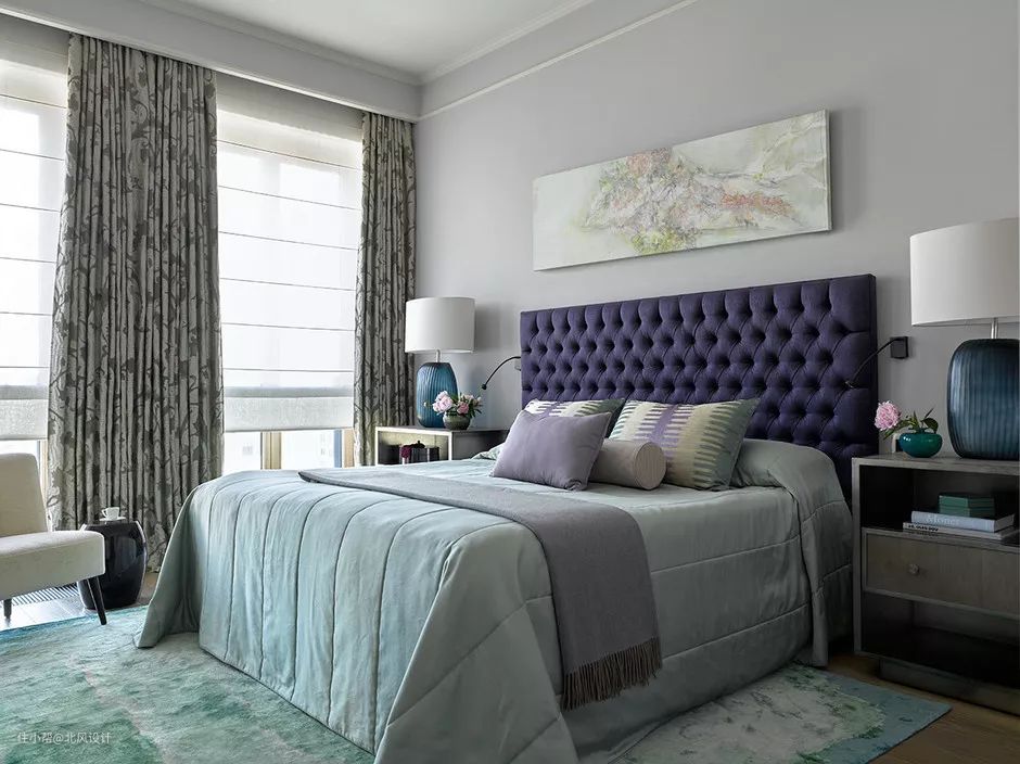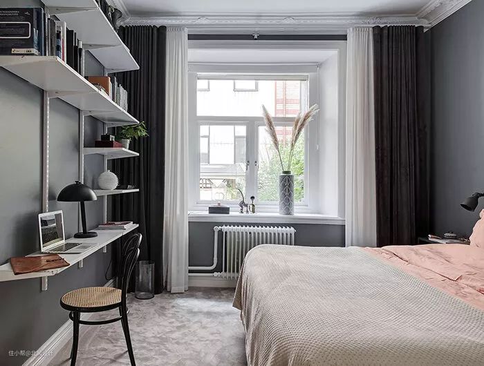 卧室内的双层窗帘可让白天最大限度地利用自然光