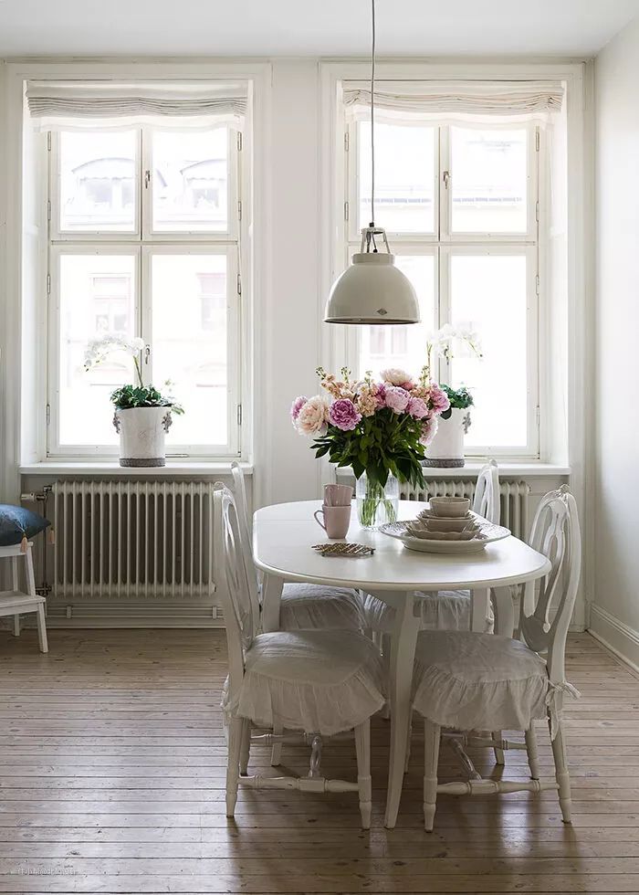 普罗旺斯风格的餐厅采用纺织褶皱窗帘