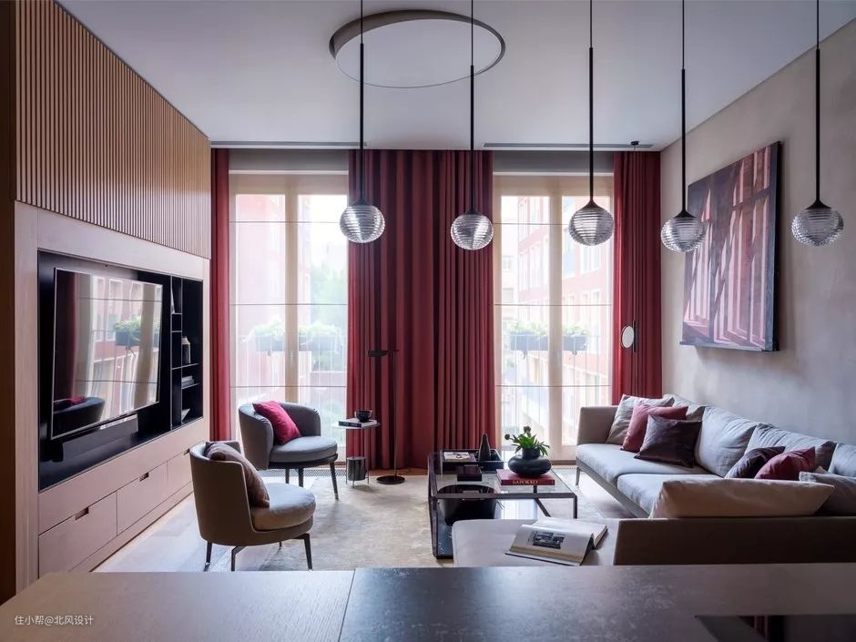 ◆特别注意颜色和材料的选择。丰富的天鹅绒和绸缎窗帘不太可能来到斯堪的纳维亚风格的简洁内饰和明亮的几何图案,更适合帝国风格的公寓。请记住:温暖的色调使房间更舒适,而且冷色调使室内“通风”。