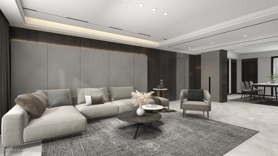 将客厅、餐厅、阳台三块区域打通,减少空间中阻挡光线和通风的墙体,整体更加简约大气,视野更加开阔敞亮。