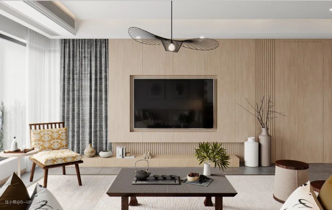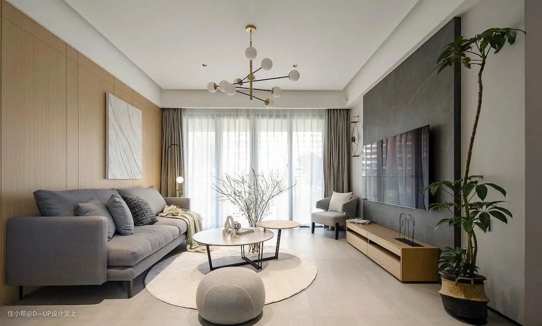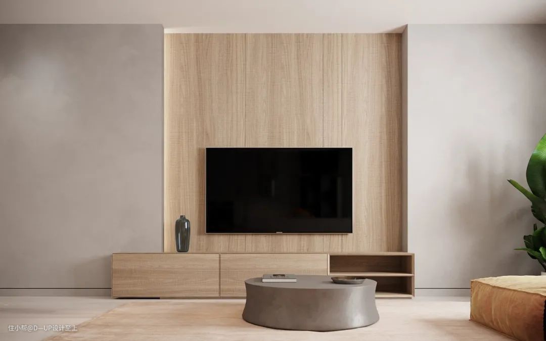 电视背景墙是家里面积比较大的一面墙,是客厅视觉的中心,大面积的木饰面上墙,造型简约,但是不失温馨,即便是极简风格也会因为一面木饰面的电视背景墙,而中和掉大部分的冷淡感。