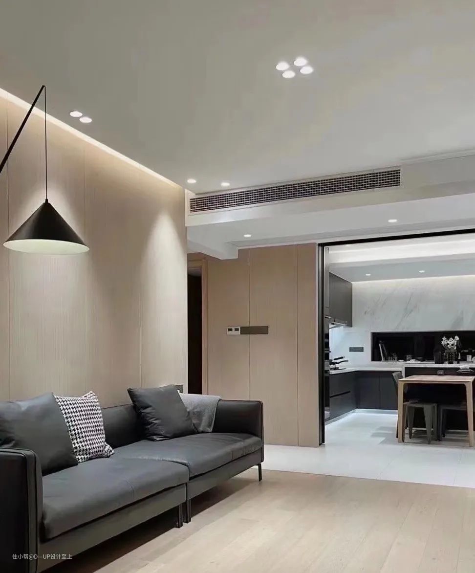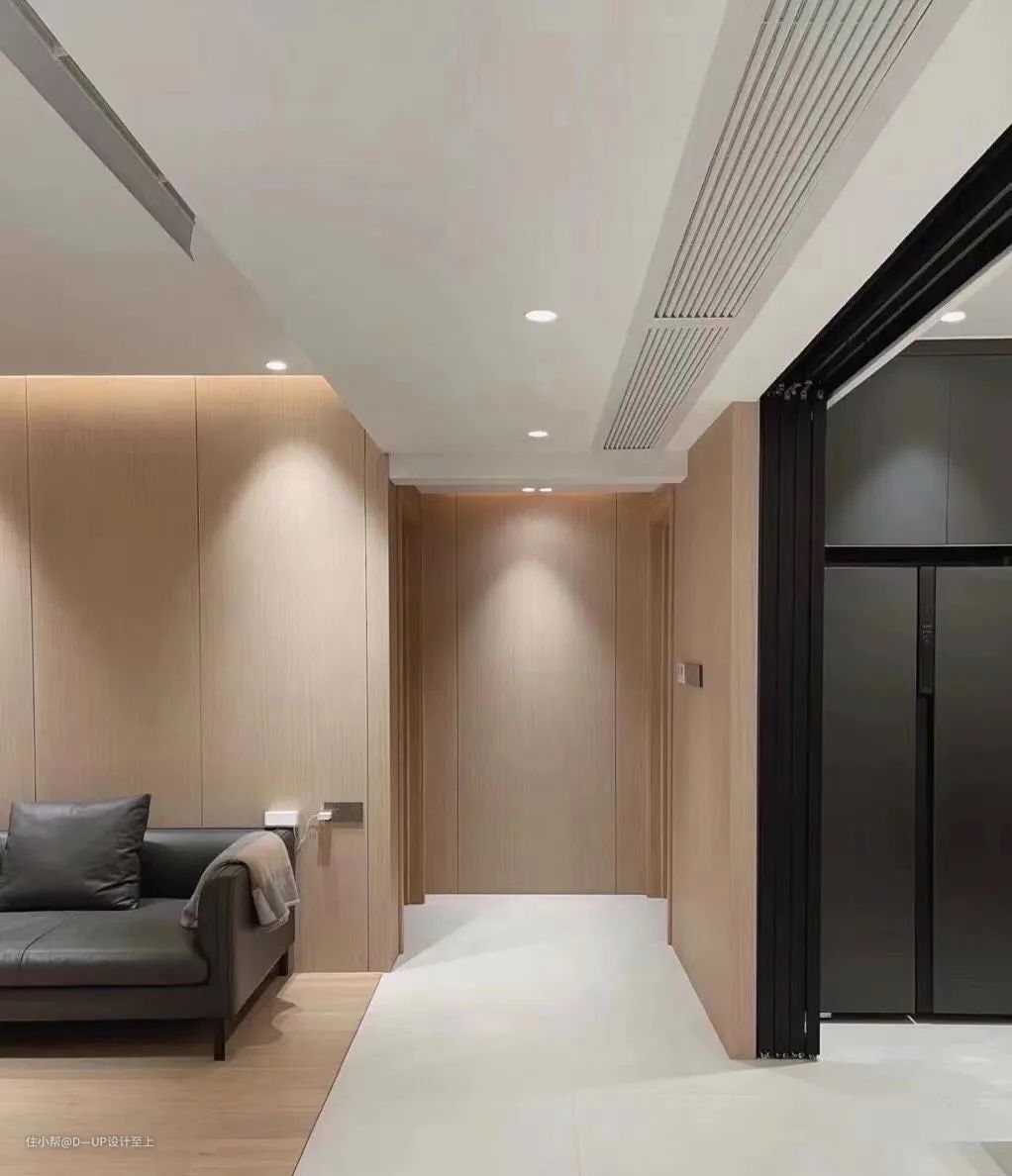 之前没有给大家写过隐形门,木饰面+隐形门可以起到非常巧妙的隐形门设计效果,尤其是墙面面积不够大,又有房门的户型,整体视觉看起来简洁又大气。