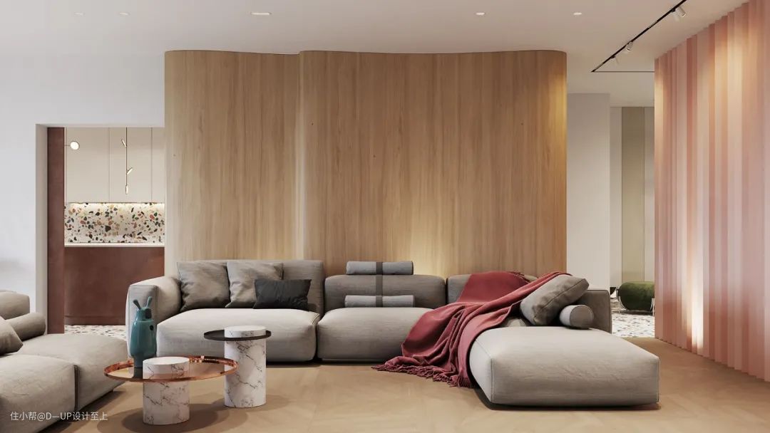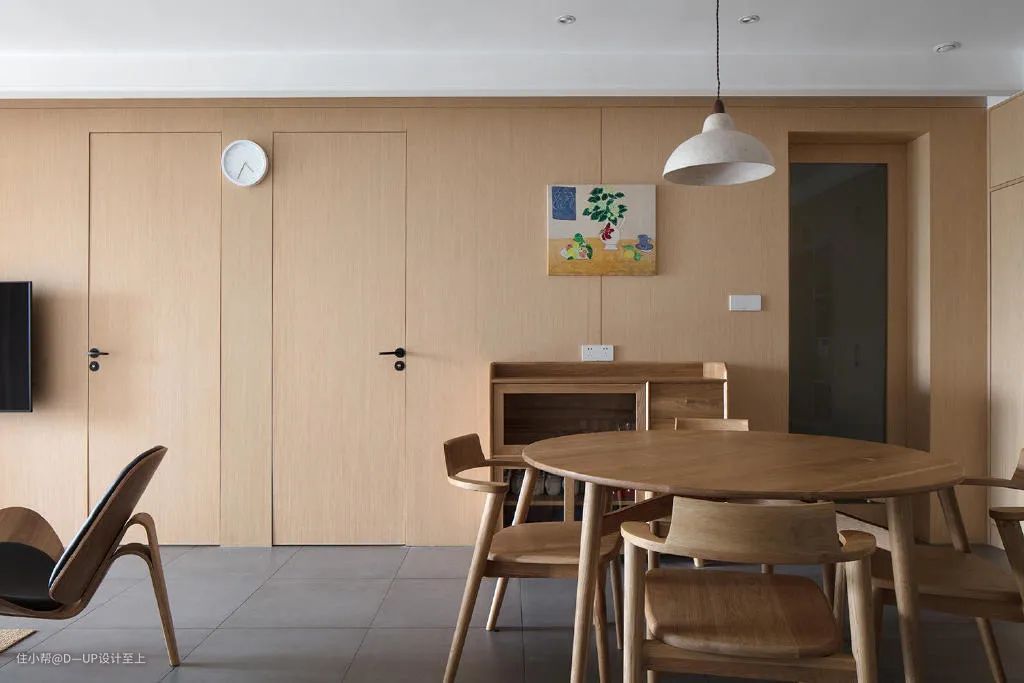 因为木饰面的保护,家具和墙面都会更加耐用,效果上也是比较温馨有安全感。比较适合日式和北欧风格。