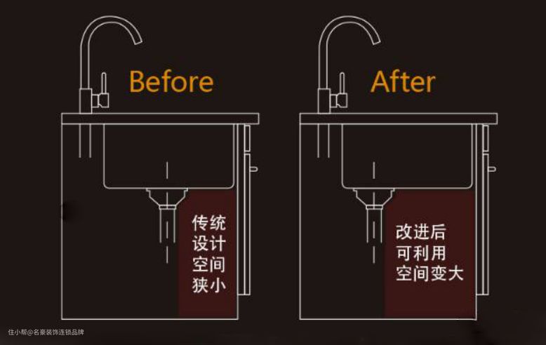从侧面看,落水后移后会腾出更多的橱柜空间