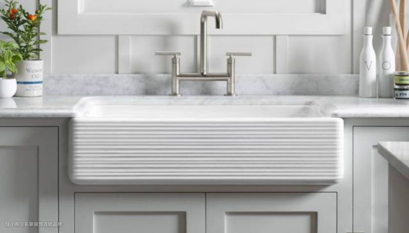 陶瓷材质的厨房水槽很好看,在外网美图里比较多见。