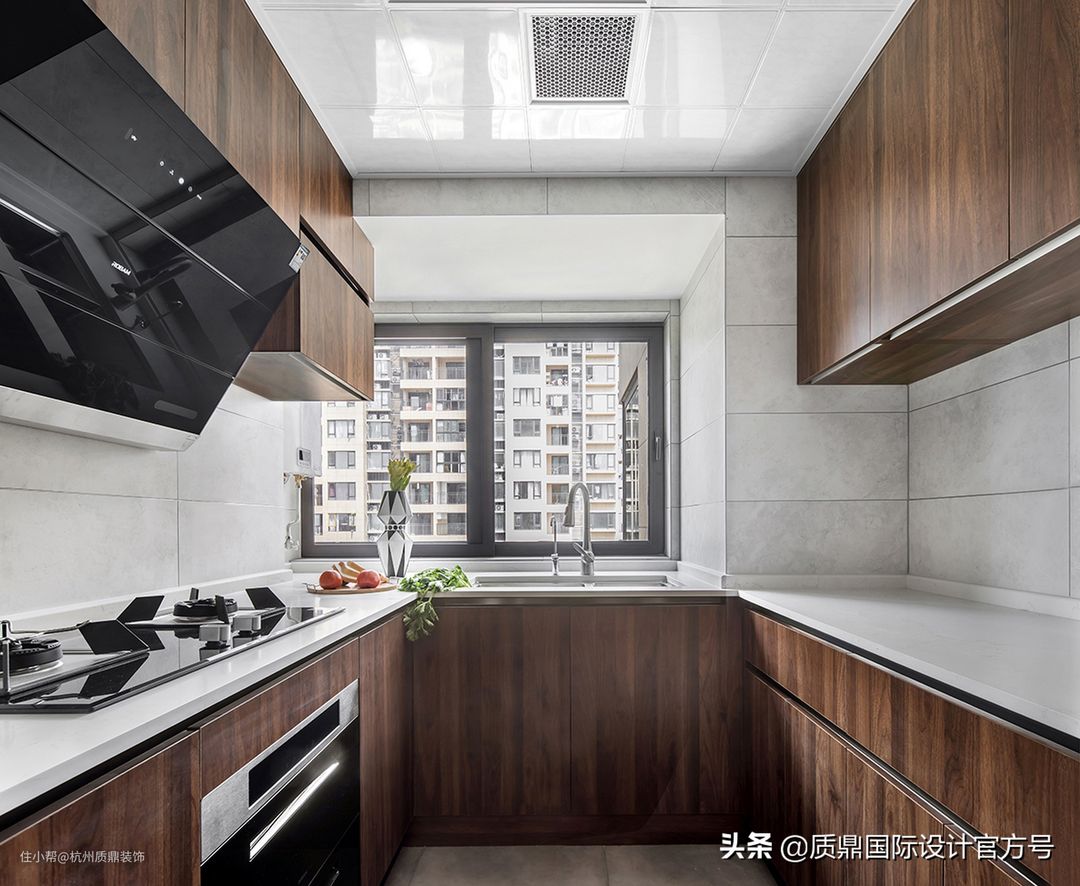 ▲厨房的柜子用的都是原木色,既容易打理又使得空间十分的典雅和大气。