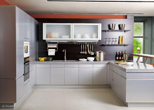 3、U形橱柜这是在国外很常见的橱柜模式,以它为基础打造出的厨房对于活动区域的要求很高而且要求有很大的面积。一般情况下,U形橱柜应该遵循三个原理。