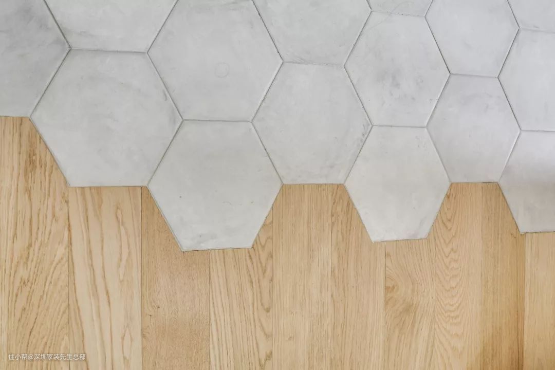 ▲六角形瓷砖和木地板拼接设计