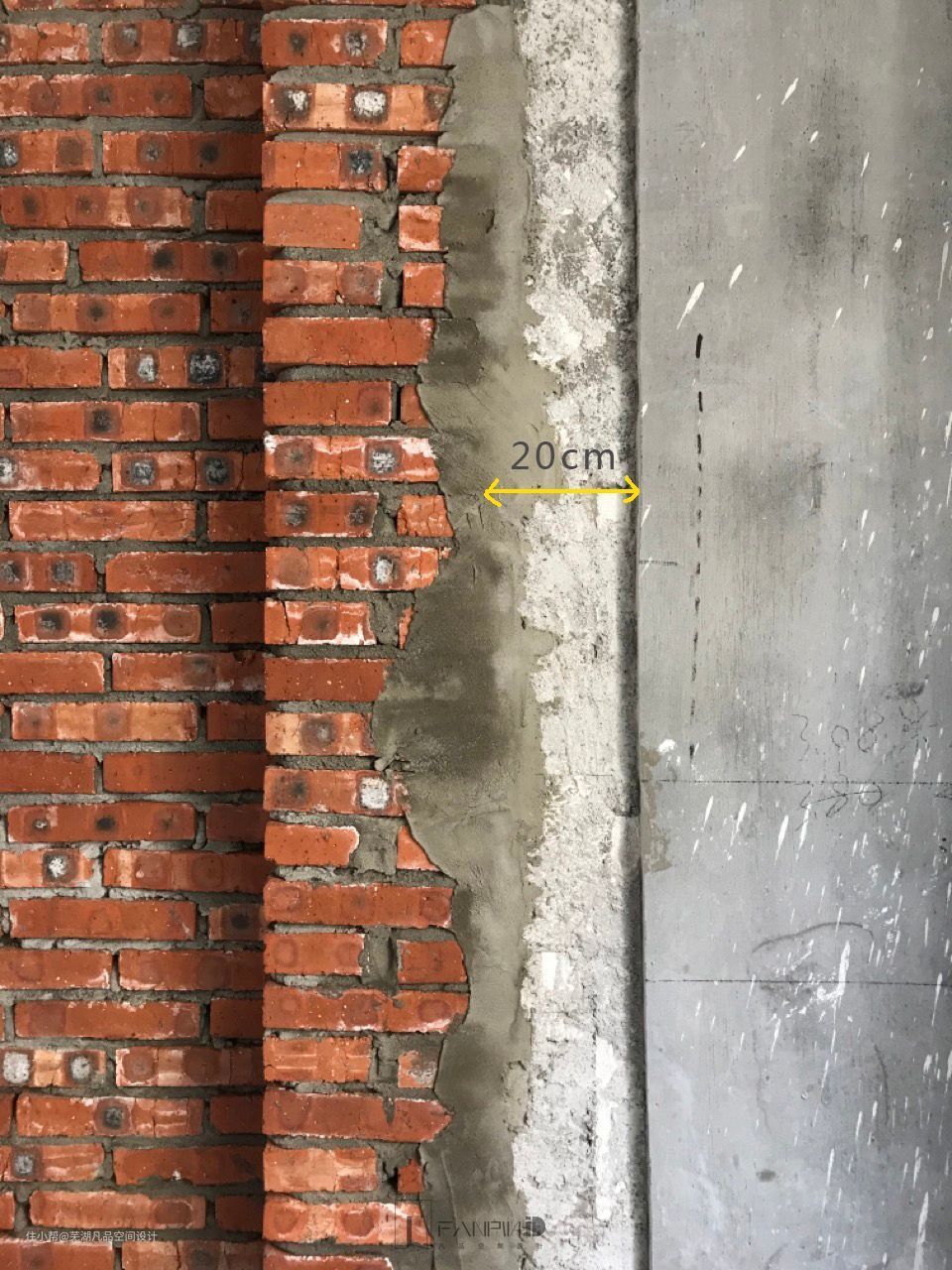 墙体拆除前核对图纸中的尺寸,现场需要结合拆除后的墙边批荡找平厚度计算,保证后期墙边批荡找平后的成熟尺寸与图纸尺寸相符!