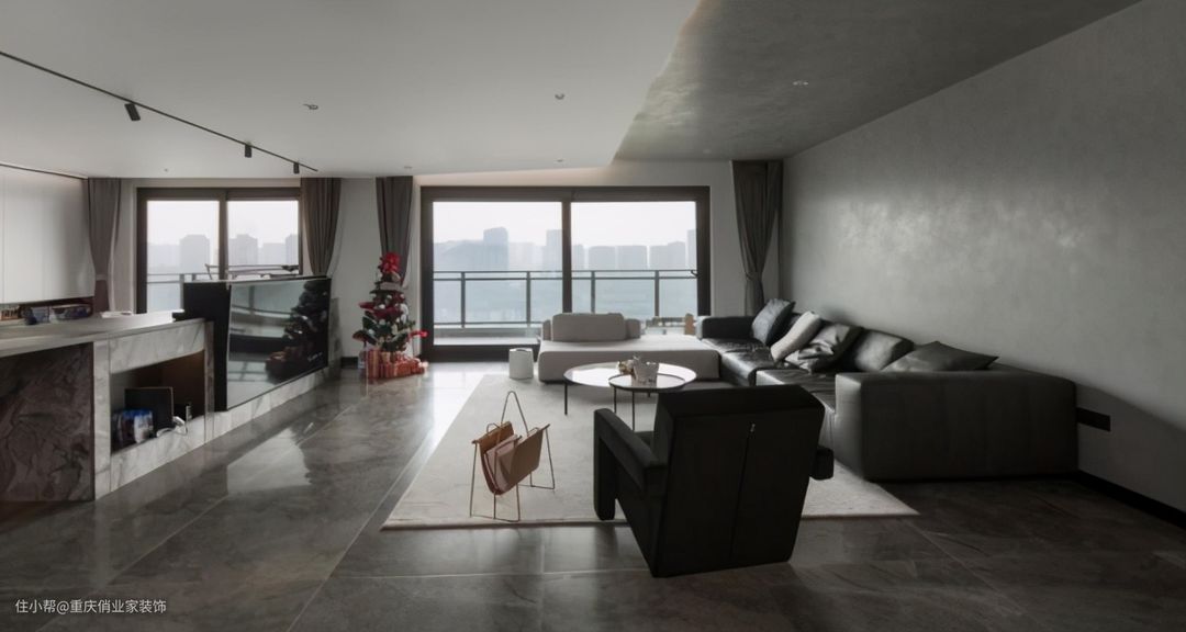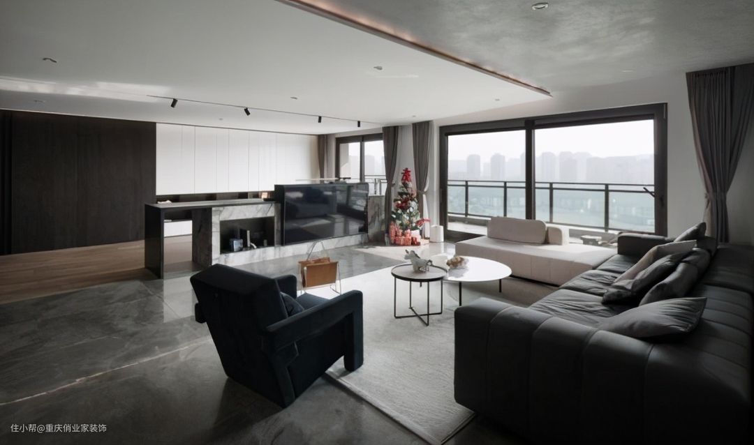 斜吊顶的设计颜值较高,很有极简主义美感和立体感,并且在发挥遮横梁功能的同时,不会过于影响层高。