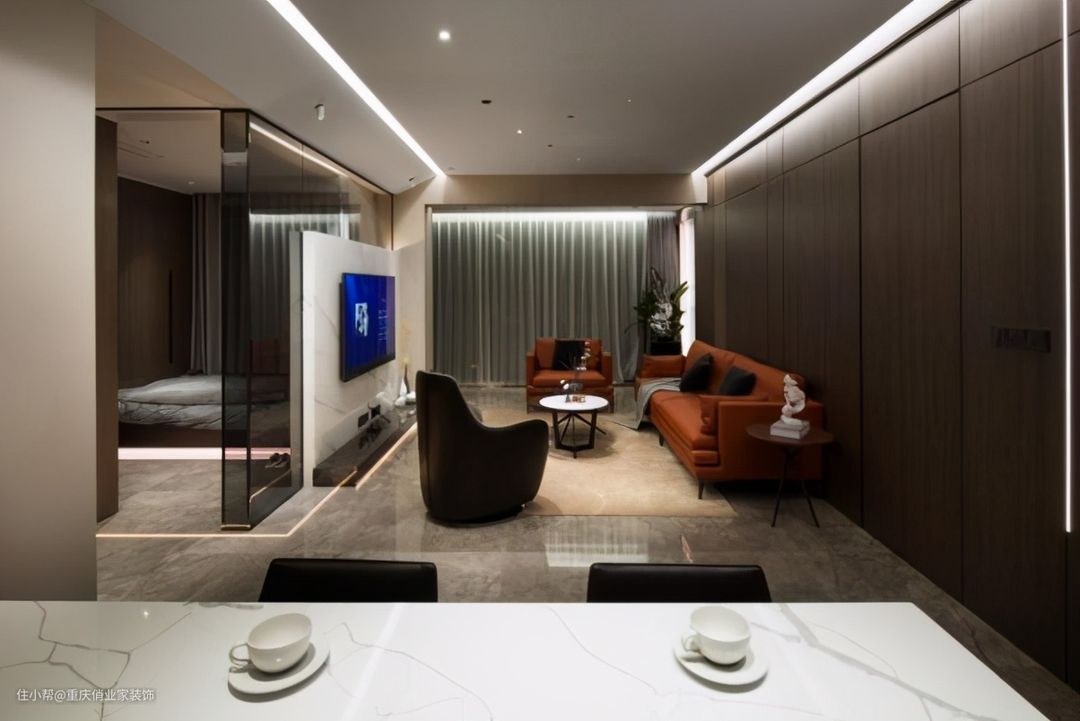 有些横梁本身就是两个空间(比如客厅和书房)的中间位置,何不直接利用它,让它成为两个空间的隔断呢?