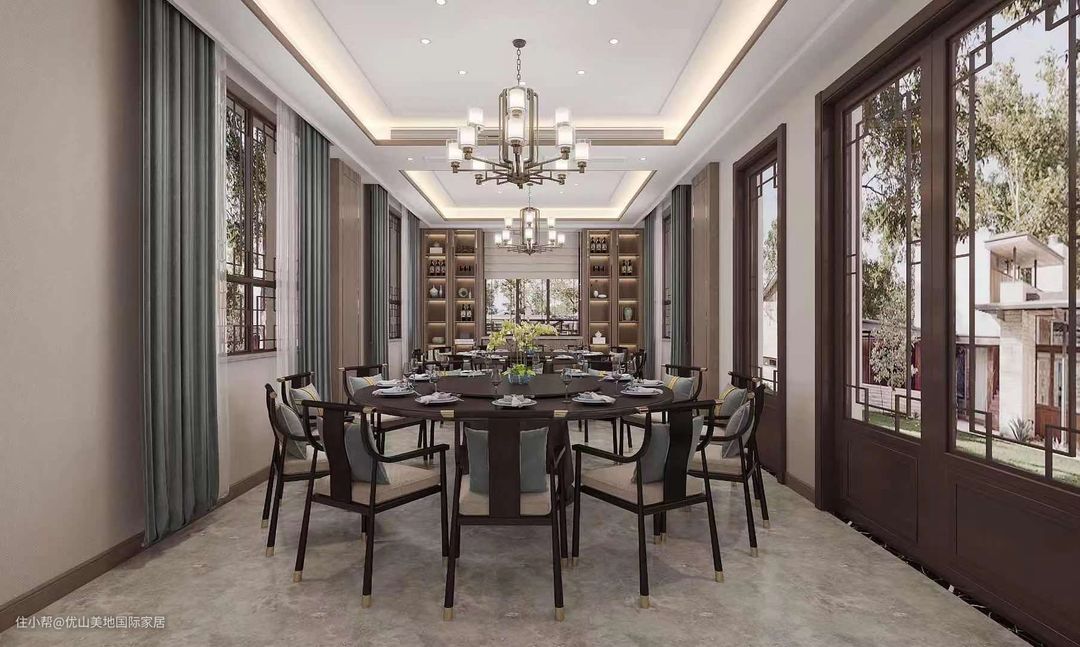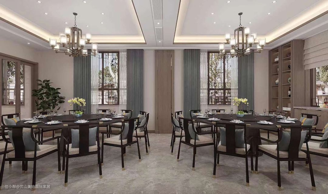 宴会厅,大圆桌符合传统文化,团团圆圆的寓意;浅绿色提升空空间庄重感且并不显得沉闷