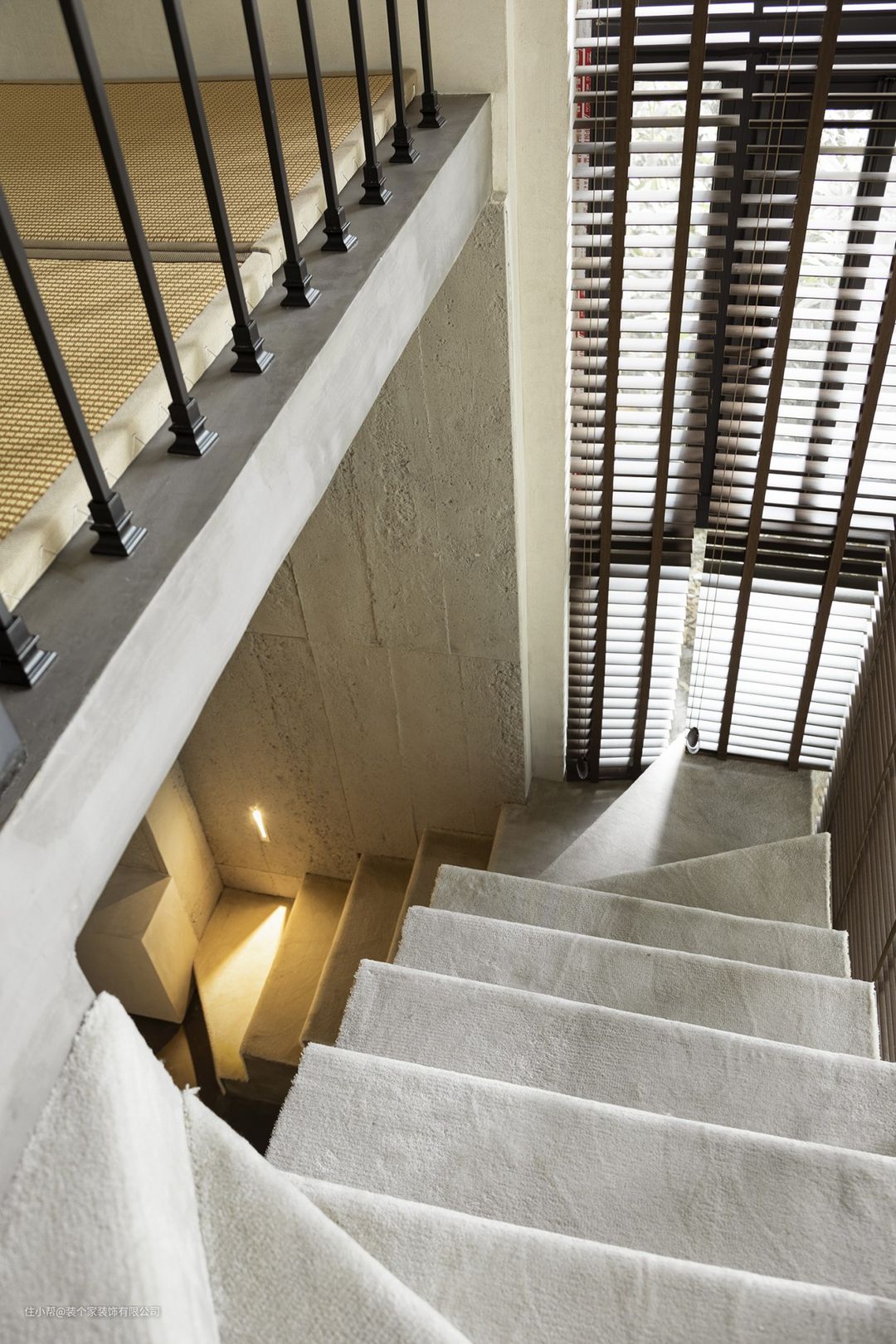 楼梯是浇筑的,希望尽可能的小,避免遮挡光线。家里没有老人和小孩,所以没有添加扶手。