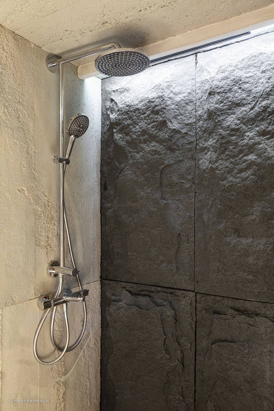 用了两款不同纹理的“聚氨酯”板材 它的特性是防水、安装简单、环保。
