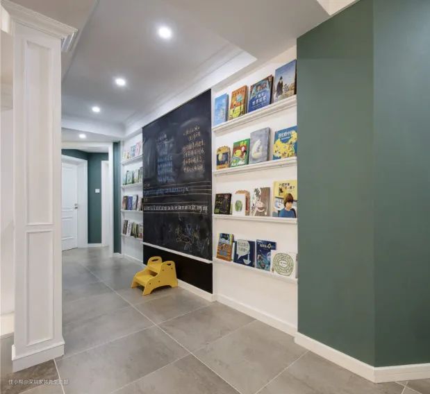 家里有小朋友,总爱乱涂乱画,不妨给走廊定做一个超大的黑板。让孩子尽情画画,给他们的想象和创意,提供充足的发挥空间。