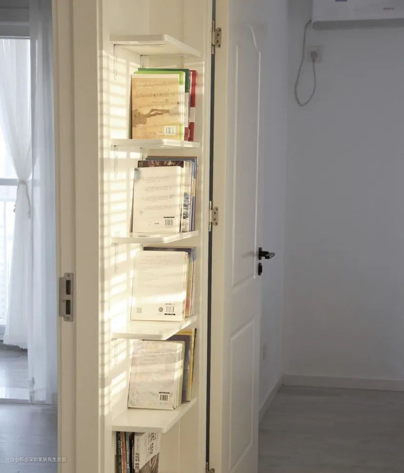 如果走廊较短,还可以通过定制隔板利用起来,不过隔板颜色尽量和墙面颜色一致,才会更统一美观。