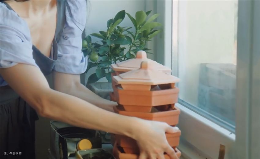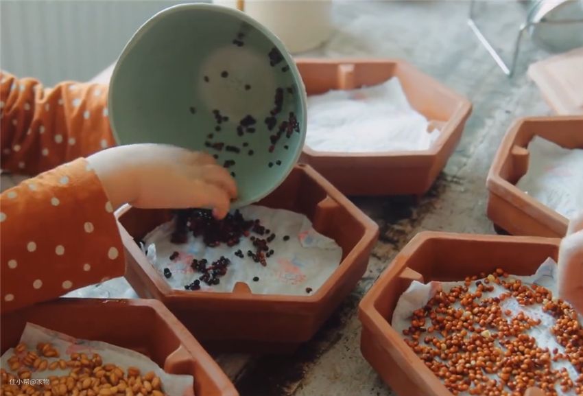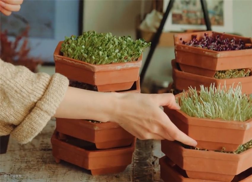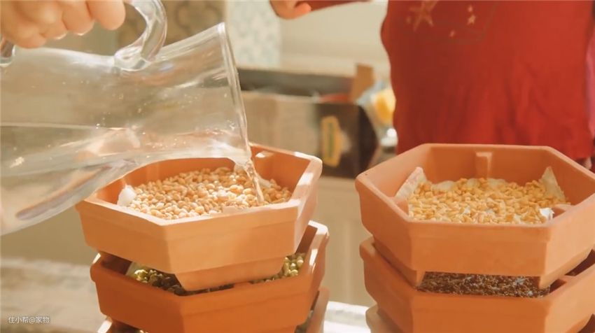 第一种方法,她先用一种陶瓷的“发芽塔”对植物的种子进行发芽,通过堆叠的设计,充分利用起了纵向的空间,即便小户型也可以用。