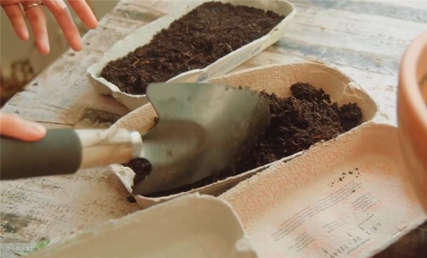 姑娘对于自家的小阳台和窗台,也研究出了一套土培的办法,那便是用废旧的鸡蛋盒!