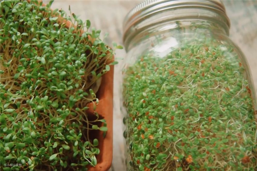 操作步骤也很简单,只需要在里面铺上一层厨房纸,将种子浸泡后再均匀平铺到上面,保证每天的浇灌和浸润,差不多一周就能发芽。