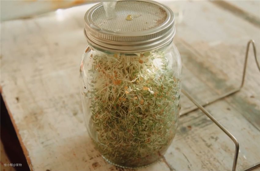 种了很多菜以后,她发现豆芽实际上是最好养的,有一个方法是直接把豆子洒在瓶子里,然后避光浸泡,每日浸泡2-3分钟再倒出除瓶内积水,豆芽就会疯长。
