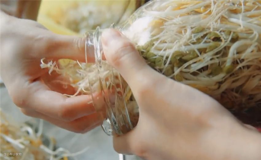 虽然每天也要照料,但一般倒一次水就OK,剩下的就交给豆芽顽强的生命力就OK。