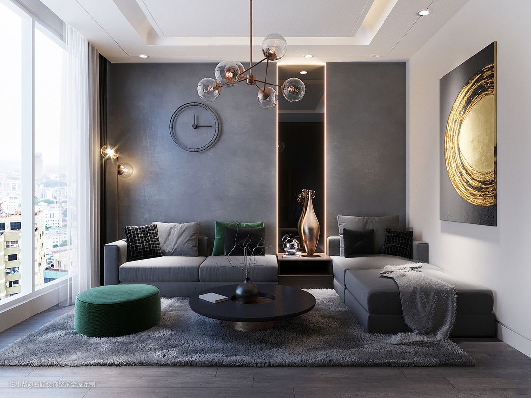 通过这几个客厅装修沙发摆放案例,我们可以很清楚地看到,沙发尺寸与主墙宽度拿捏精准了,视觉上的比例自然会相当漂亮!总结下来,沙发尺寸大概占主墙三分之二的宽度,通过不同的组合方式,变化处不一样的感觉。