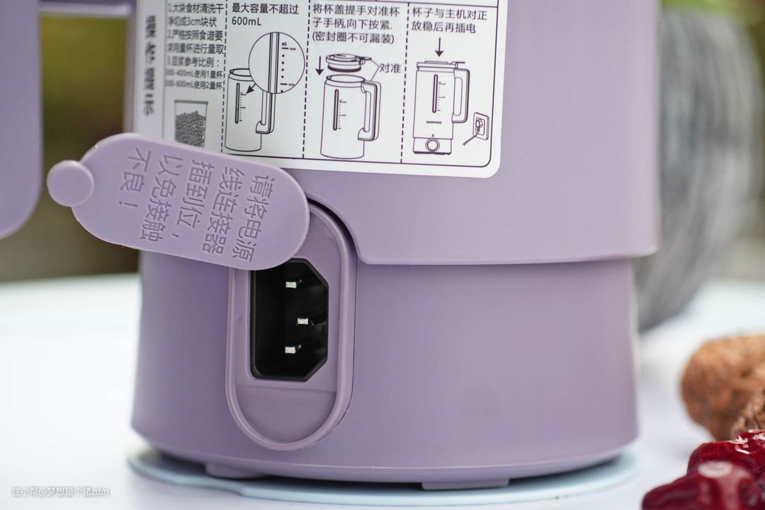 主机背侧则是这种可以电源线可以分离的设计,在不需要使用的时候,将电源下拔下来,这样不但更安全,放置收纳也更方便 ,不过这台轻养破壁机其实整体比较小巧的,平时放置在餐边柜或者餐桌上都不怎么占地方。