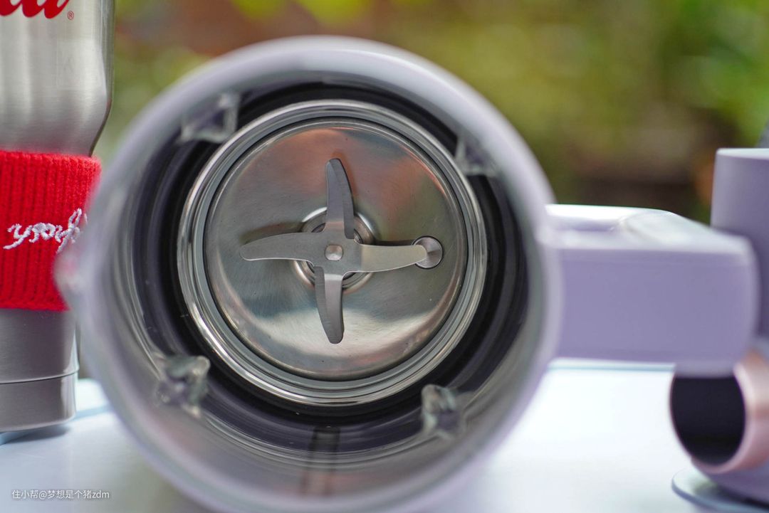 从这个角度可以看到搅拌杯底部的搅拌刀片和加热底盘,500W的加热功率在制作饮品时加热速度还是非常快的,就算是豆浆、辅食等食物,短短十来分钟就可以制作完成。