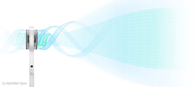 因为风轮是圆筒状,因此,从塔扇出风口吹出来的是垂直地面的一个立体状的风幕,通过左右摇摆吹送,送风非常均匀柔和,比起传统风扇来说,塔扇吹出来的风要更接近于自然风一些。