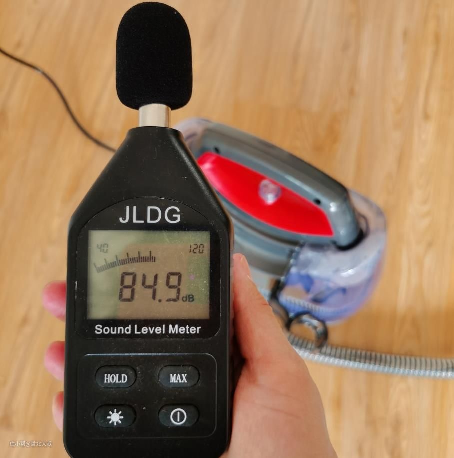 给大家看一下这个噪音,80多一些,和官方说的不到70还是有一点出入的,但这个大家要理性的对待,凡是这样的电机类的产品,风量、吸力越大噪音也是越大的,不要走入一个误区了。