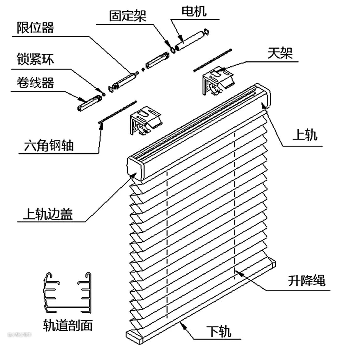 轴帘配件有制头、拉绳等,制头分为内装和外装2种。