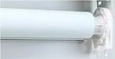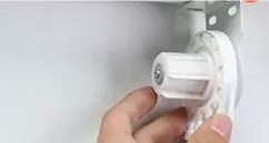 外装是将成品与窗户比较, 找到合适的位置后, 在窗框或墙壁上标示制头螺钉的位置, 用螺钉将左右制头拧紧在窗框或者墙壁上, 并且将无拉珠的制头上的可转动模块掀开。