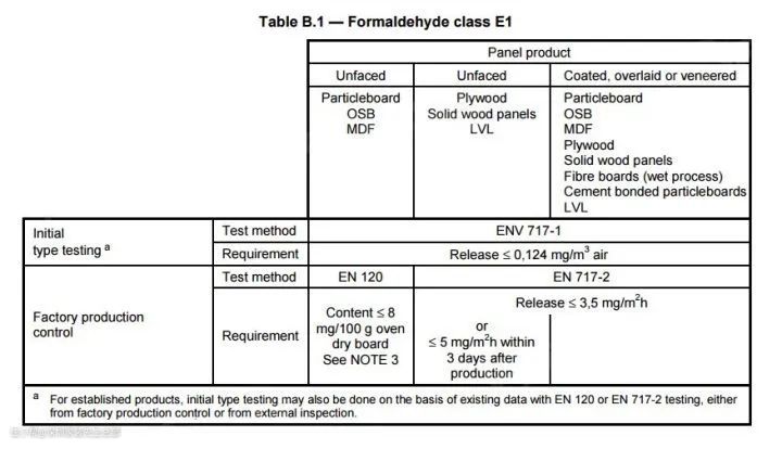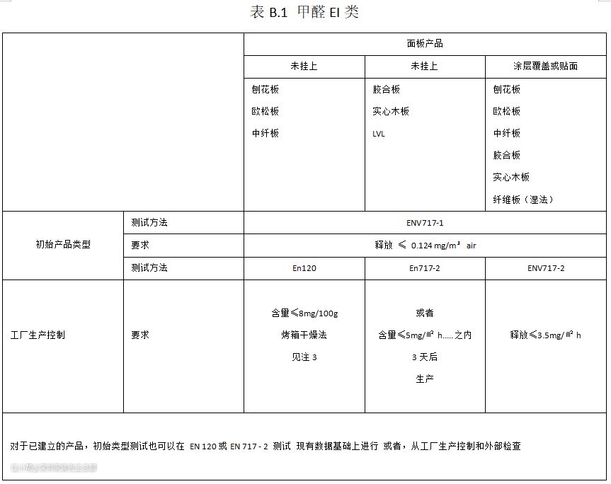 ③国家标准E1 =欧洲标准E1(极限为0.124 mg /m³);
