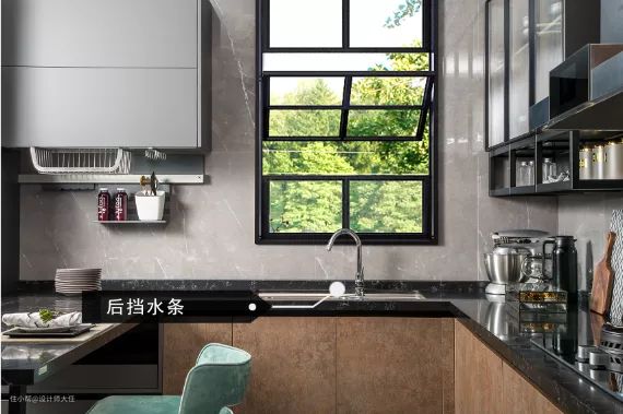台面是最容易积水的地方,为了防止积水流淌到墙面和橱柜缝隙,可以在靠墙的台面加上挡水条,避免墙面发霉和柜体腐坏。