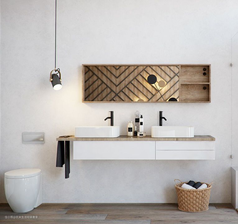 想要方便一家人使用,不妨试试双人洗漱台设计,整体简洁又极具实用性,家庭成员比较多的情况下,双人洗漱台绝对是首选,避免每天早起争抢洗漱的情况。