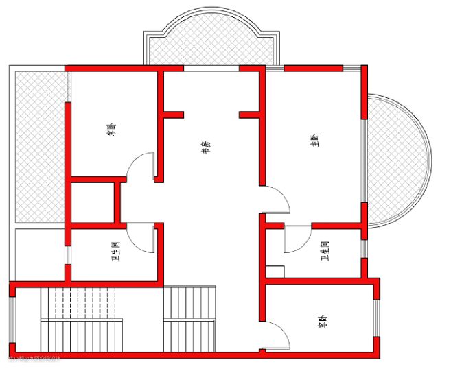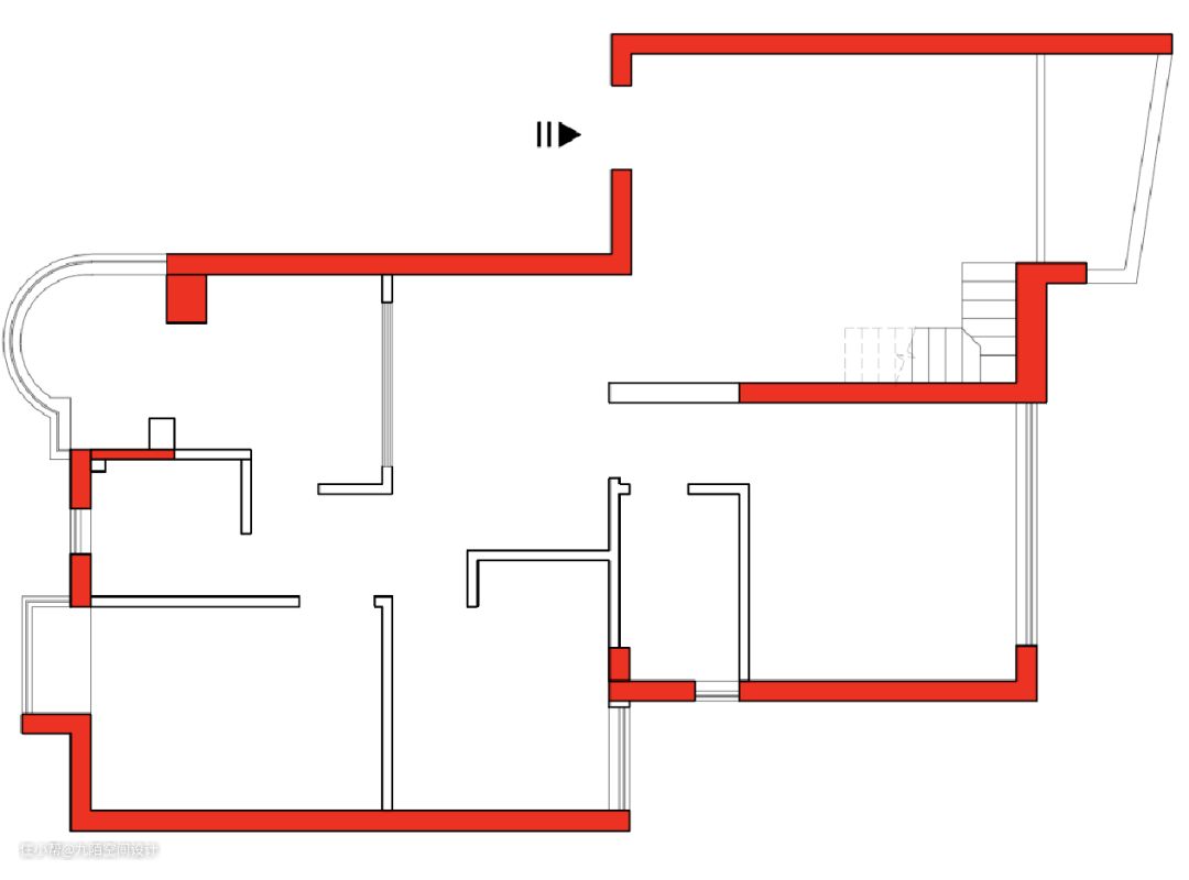 这个案例是一个剪力墙结构,红色部分是他的结构体系不能改动,对比可以看到这一块是没有变。