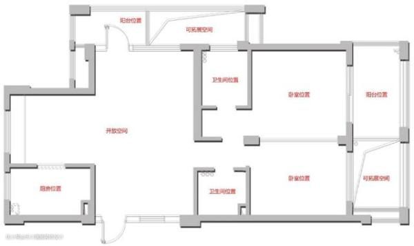 原户型结构图,户型规整还算不错,但也存在一些问题。