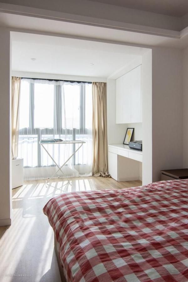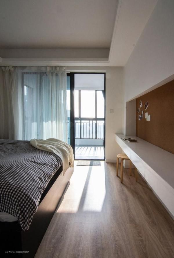 次卧阳台打通扩大视觉空间,原本阳台空间设计成多功能区,学习、娱乐两不误。